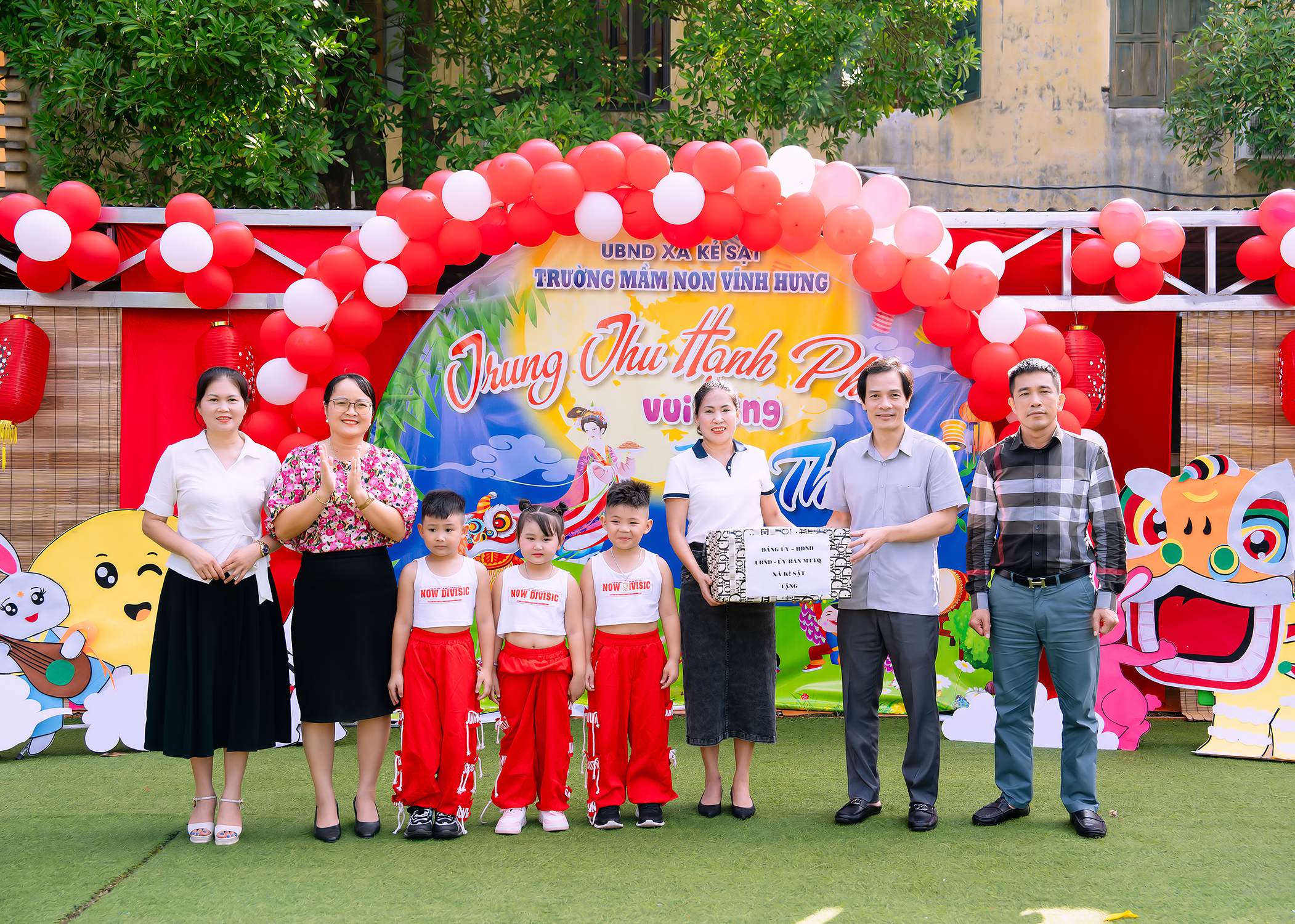Đoàn do đồng chí Bùi Sỹ Hoàn - Bí thư Đảng uỷ, Chủ tịch HĐND xã làm trưởng đoàn đã đến thăm và tặng quà Tết Trung thu cho các em nhỏ trường Mầm non Vĩnh Hưng. Đoàn do đồng chí Vũ Viết Lập - Phó bí thư Thường trực Đảng uỷ xã làm trưởng đoàn đã đến thăm và tặng quà cho các em nhỏ trường Mầm Non Vĩnh Hồng. Đoàn do đồng chí Vũ Hữu Tuấn – Phó Bí thư Đảng ủy, Chủ tịch UBND xã làm trường đoàn đã đến thăm, tặng quà Tết Trung thu tại trường Mầm non Hùng Thắng. Đến thăm và tặng quà Tết Trung thu tại trường Mầm non Sao mai và trường Mầm non Kisdhouse có Đồng chí Vũ Đình Lập – Phó Chủ tịch UBND xã. Các đồng chí lãnh đạo, chuyên viên phòng Văn hóa xã hội đã đến thăm va tặng quà Tết trung thu cho các em nhỏ tại trường Mầm non Đa Minh.
